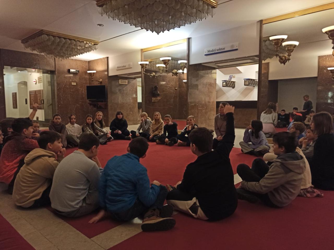 Dne 15.1.2024 navštívila třída 5.A Národní divadlo, kde zhlédli program Národní divadlo hoří. Program je určen přímo pro školy a žákům se moc líbil.